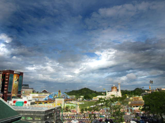 Although I was disappointed with most of my shot, all didn't go in vain... the below pic was a shot I took this morning at the parking lot before heading back home. the picture itself was bad, had an over saturation and too much contrast and the cloud and sky was dull...just did a few dodge and burn for the sky and an artistic touch for the land and buildings.